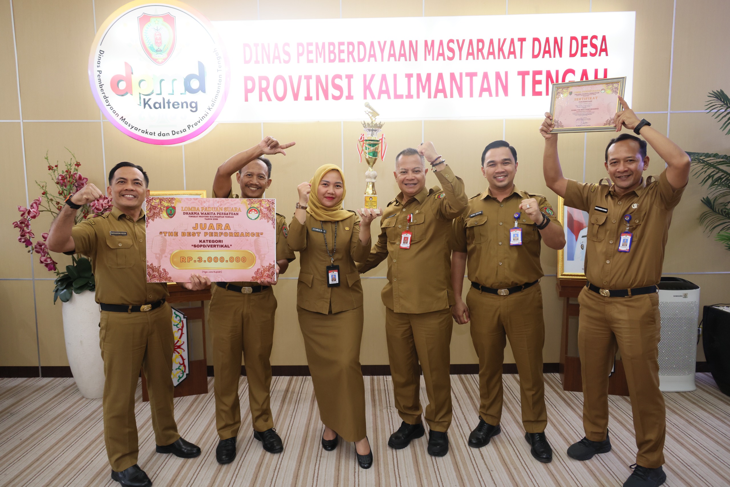Penghargaan ini merupakan hasil yang diperoleh berkat tekad dan komitmen anggota DWP Dinas PMD Prov. Kalteng dalam menyalurkan bakat di bidang seni. Penampilan yang penuh harmoni membuat dewan juri menobatkan DWP Dinas PMD Prov. Kalteng sebagai penerima penghargaan Best Performance.
